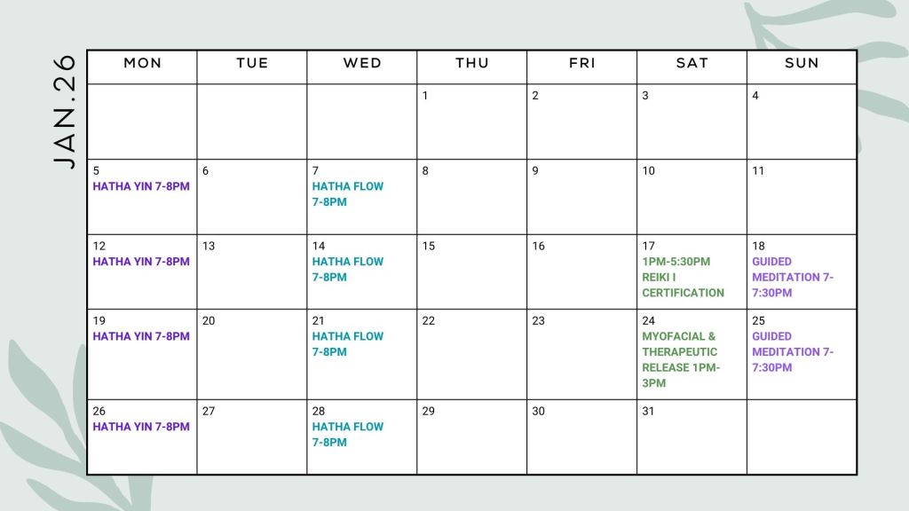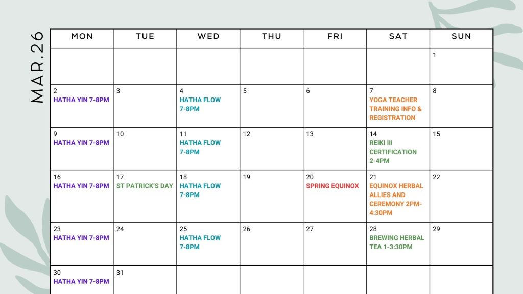 Class and Event Schedule Spring 2026: Winter 2025/26 Fall Schedule YTT schedule 2025-2026Download Contact Christina if you’re interested in joining! Go backYour message has been sent Name(required) Warning Email(required) Warning Class interested in(required) Hatha Yin Hatha flow Meditation Yoga Teacher Training Reiki Training Reiki Mastery Level Training Other Event/class Warning Please add your inquiry here: Warning Warning. Send RSVPSubmitting form Δ Share this: Click to email a link to a friend (Opens in new window) Email Click to share on X (Opens in new window) X Click to share on Facebook (Opens in new window) Facebook Click to print (Opens in new window) Print Click to share on Pinterest (Opens in new window) Pinterest Like Loading...